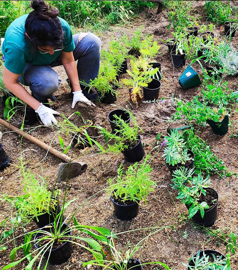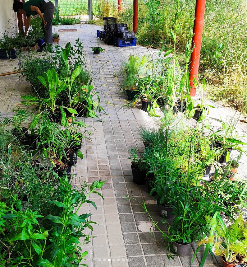 Para el diseño y plantación del nuevo jardín de 6,50 m x 2,5 m contamos con el grupo ocupacional de jardinería de Afandice para la producción de plantas silvestres ,con la cooperativa El Bancal para acondicionar y airear el suelo de la parcela, con el jardinero municipal que empatizô con nosotros para no segar toda la pradera existente y limitarse a marcar ciertas sendas alrededor del marco de plantación, con los entusiastas chavales del EIM que nos ayudaron en la plantación y, cómo no, con el diseño y coordinación en la plantación de nuestra paisajista de cabecera Malú Cayetano.